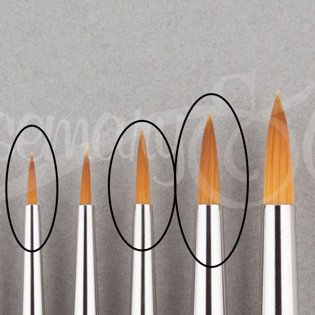 This is an exquisite little brush that will pull a lovely organic line, create a round dot of various widths and come to a pin point. The short length of this specialty pointed round brush also makes it much stronger than longer pointed rounds, with extra spring. You will love it! Every painter needs a spotter!
