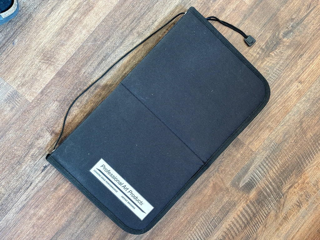 This is the best brush case there is! It is a zippered tough black nylon material case that not only folds to close, but also folds back when open, creating a display stand for your brushes, when you are painting. There is clever locking device that will hold it in this position or release it from it. The roomy but secure elastic strapping for the brushes gives the maximum flexibility for numbers of brushes you wish to carry. It will carry a generous set of long and/or short oil painting brushes, or just a few. Β Your brushes are well organized, protected and ready to work when you are!